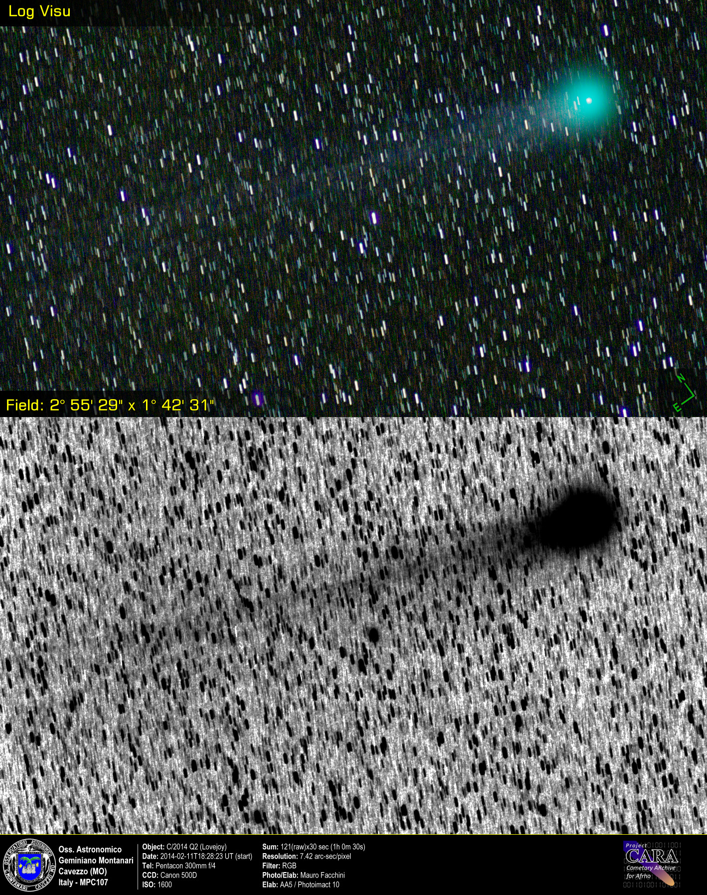 Comets C/2014 Q2 Lovejoy, M42 (Orion Nebula), North celestial pole