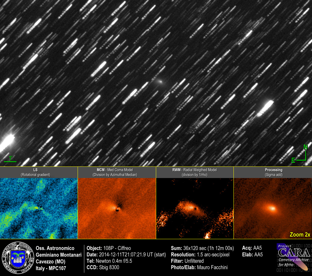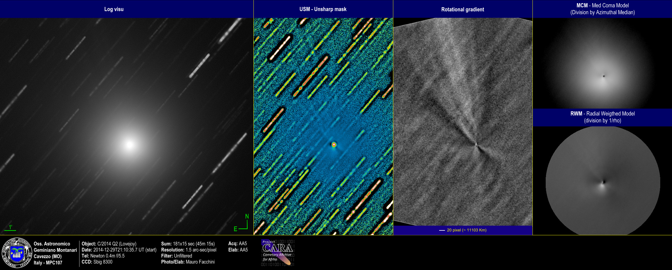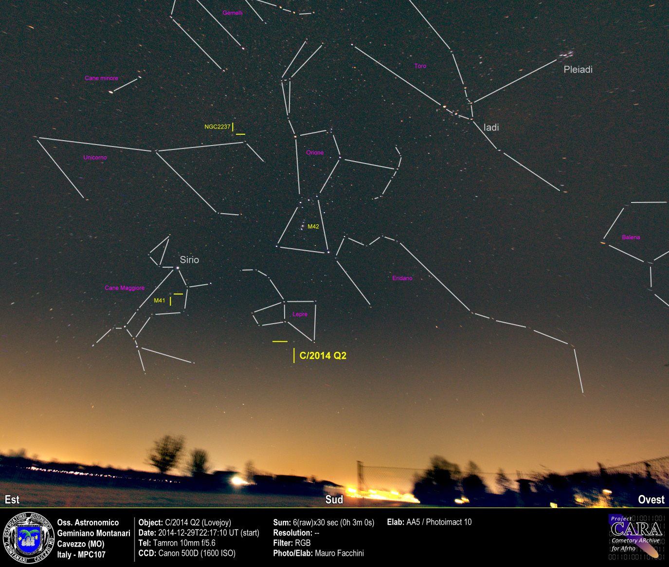 Immagini della cometa C/2014 Q2 - Lovejoy che nel mese di gennaio potrebbe rendersi visibile a occhio nudo. Le condizioni meteo di ripresa nonostante il cielo sereno sono state rovinate dal vento e da una turbolenza veramente distruttiva.