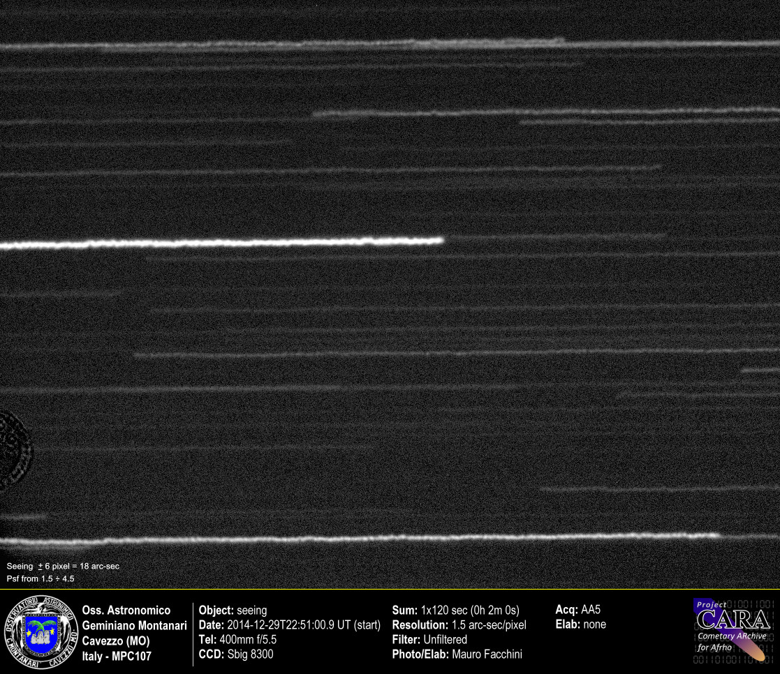 Immagine di strisciate stellari affette dalla turbolenza fatta a telescopio fermo. E' evidente come le strisciate siamo irregolari e discontinue.