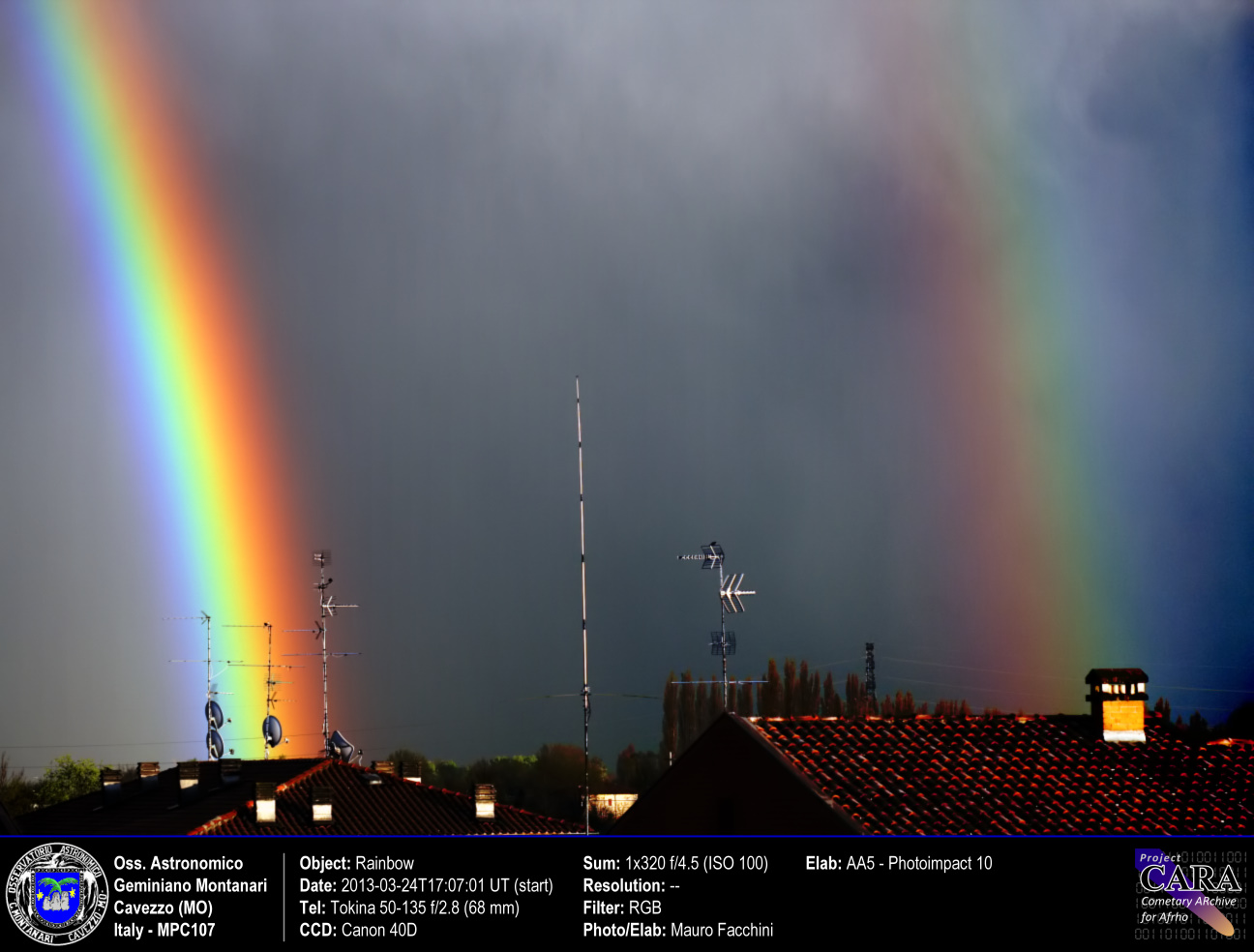 Bellissimo arcobaleno del pomeriggio del 24. I colori erano veramente intensi, inoltre compariva anche il secondo arcobaleno. Purtroppo dalla mia postazione non sono riuscito a vederlo completo.