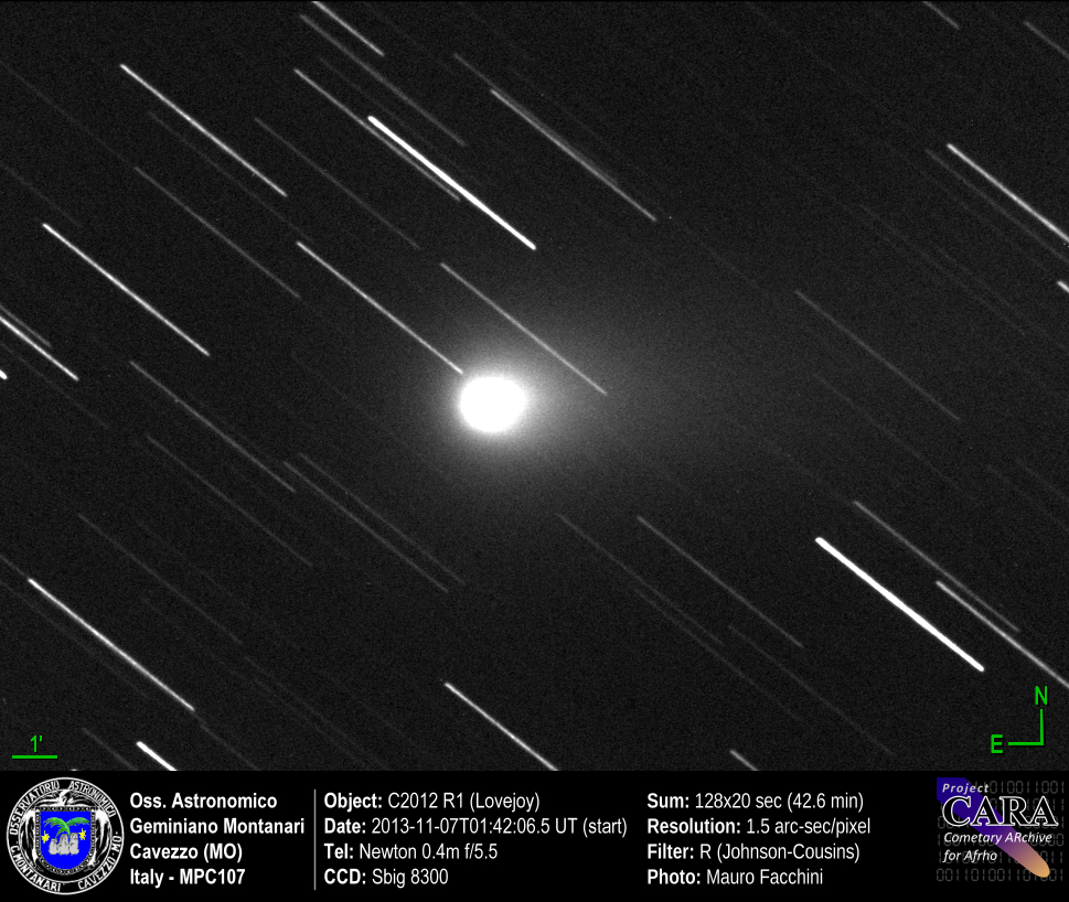 Cometa di stamane, C/2013 R1 - Lovejoy. Le condizioni di ripresa non sono state ottimali per via delle nuvole.