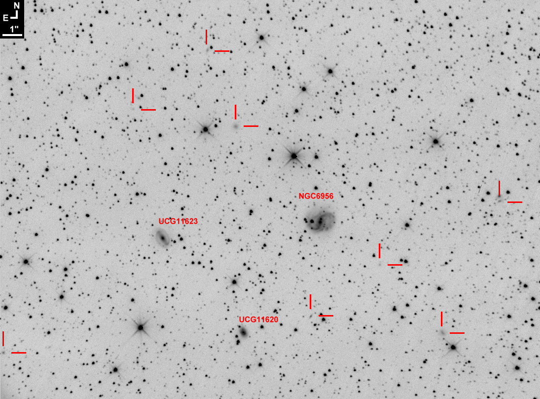 Nella stesso campo sono presenti oltre alle galassie numerate altre (segnate da un crocicchio rosso) molto deboli.